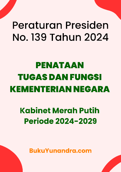 BukuYunandra.com Peraturan Presiden No. 139 Tahun 2024 Penataan Tugas dan Fungsi Kementerian Negara Kabinet Merah Putih Periode 2024-2029